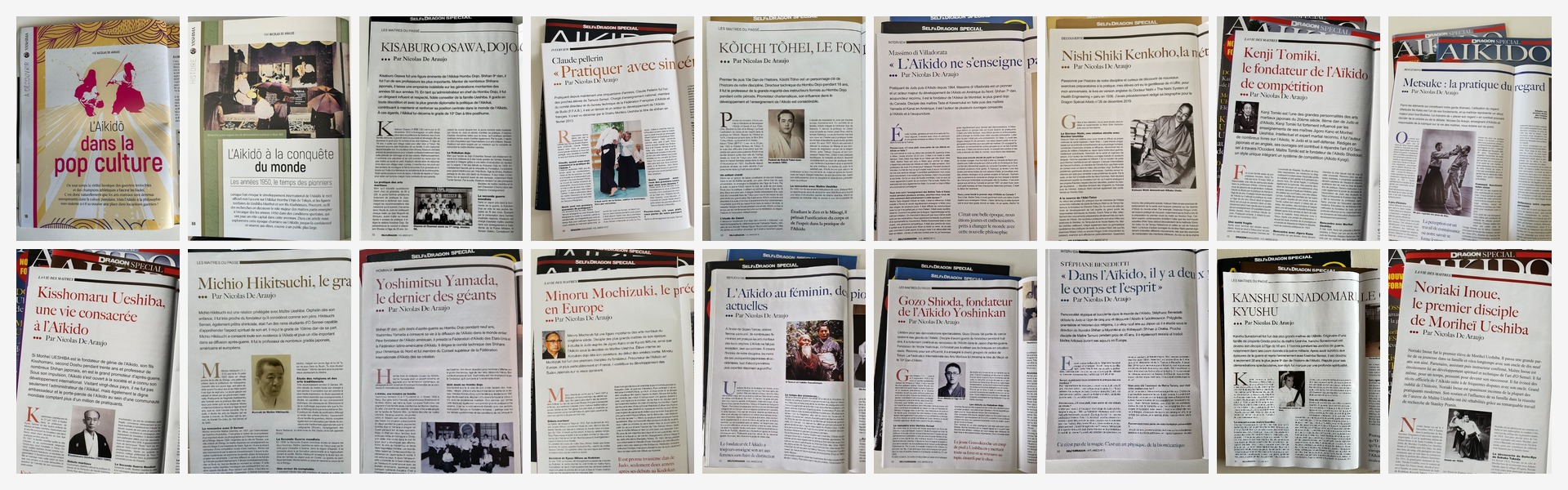 Entre 2018 et 2025, grâce au soutien du rédacteur en chef Germain Chamot, il signe dans Dragon Hors-Série Aïkido puis dans Self & Dragon Spécial Aïkido une rubrique consacrée aux disciples éminents du maître Ueshiba. Il y publie des biographies de maîtres historiques, des interviews d'experts contemporains et des articles sur l’évolution et l'histoire de l’Aïkido.