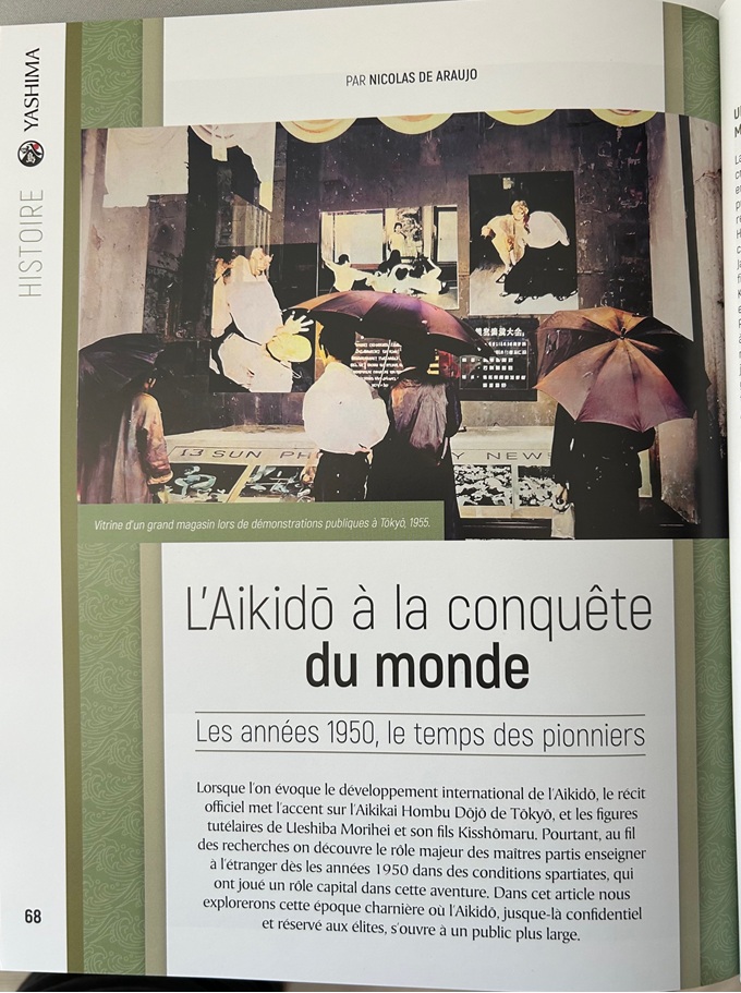 Pour ma part, vous découvrirez dans ce numéro, la première partie de mon article dédié au développement international de l'Aïkido et intitulé "L’Aikidō à la conquête du monde" consacrée aux années 1950. Des figures essentielles comme Minoru Mochizuki, Tadashi Abe, Koichi Tohei, Kenji Tomiki ou encore Aritomo Murashige ont joué un rôle capital dans cette aventure. Leurs actions méritent d’êtres replacées dans son contexte et éclairées avec justesse. C’est cette époque fondatrice que je vous propose de retracer.